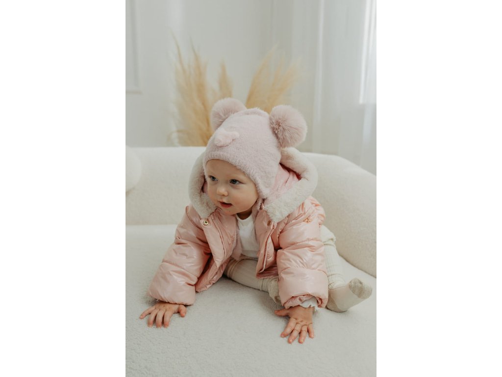 Čiapka ALLYS sa vyznačuje pôvabnými detailmi vrátane dvoch kožušinových brmbolcov a aplikácie v podobe myšacej hlavy, čo jej dodáva jedinečný charakter. Praktické zaväzovanie pod krkom zaisťuje, že čiapka zostane na svojom mieste a účinne chráni hlavu a uši vášho dieťaťa pred chladom.