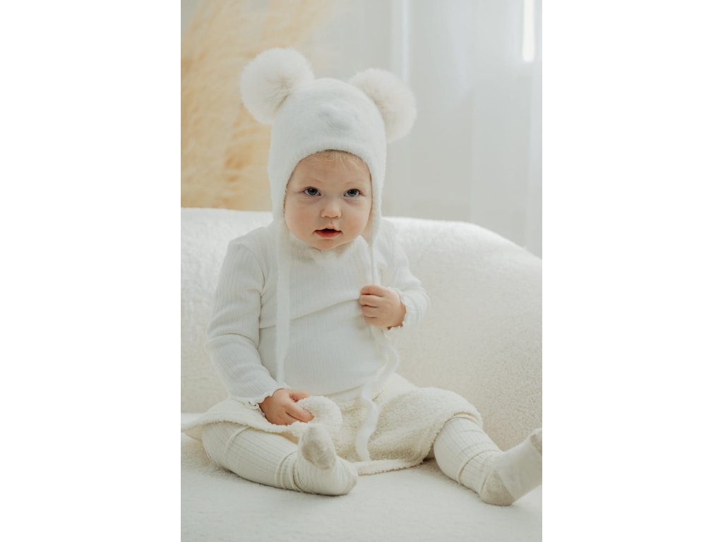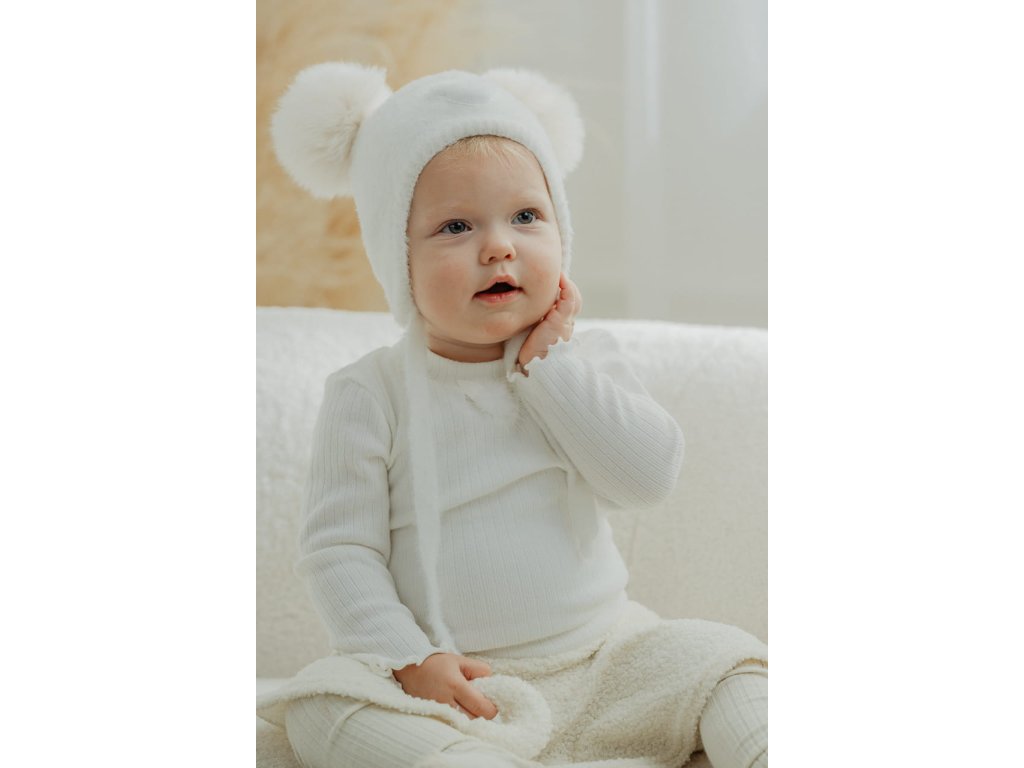 Zimná čiapka pre dievčatá s dvoma brmbolcami ecru