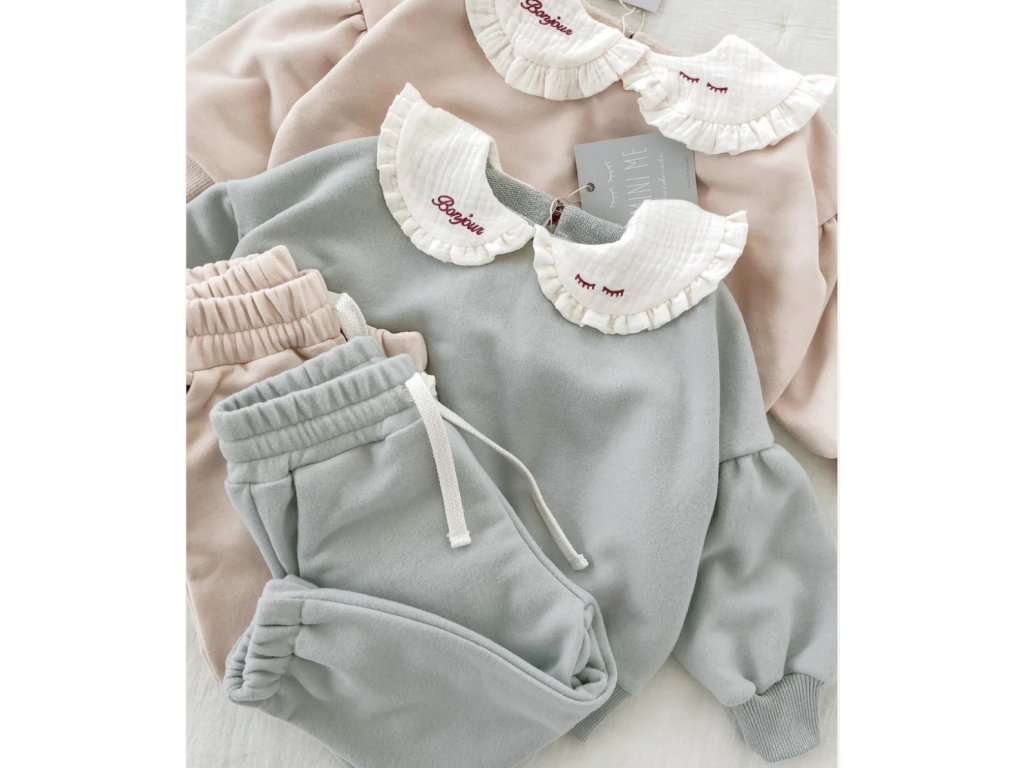 Bavlnená tepláková súprava s mušelínovým golierom s nápisom Bonjour