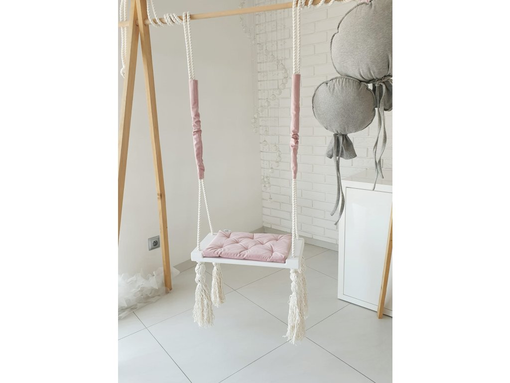 PARAMETRE: Farba: ružová + biele drevo Rozmery hojdačky: 50 cm x 25 cm Zloženie: zloženie: 100% certifikovaná mäkká čalúnnická látka, borovicové drevo, bavlnené lano Vek: 4 roky + Hmotnosť dieťaťa: do 50 kg Montáž: - (dĺžka lana cca 200 cm) - štandardná výška miestnosti 2,5 m - 2,7 m - k zárubni (dĺžka lana cca 150 cm) - štandardná výška zárubne - na objednávku - individuálna dĺžka lana UPOZORNENIE: Súprava neobsahuje háčiky, ktoré je potrebné zakúpiť pre konkrétny/konkrétny povrch. Požadované parametre háčikov: - priemer min. 6 mm - zakrivenie háku minimálne 540° Požadované parametre pre hmoždinky: - priemer min. 10 mm - dĺžka min. 70 mm Pri nákupe nám prosím oznámte, akú dĺžku lana požadujete (pre strop alebo zárubňu). POZOR: Používajte len pod dohľadom dospelej osoby!