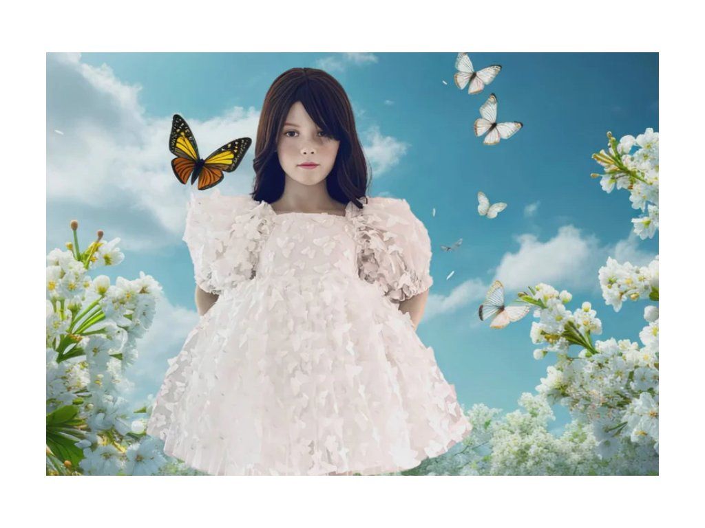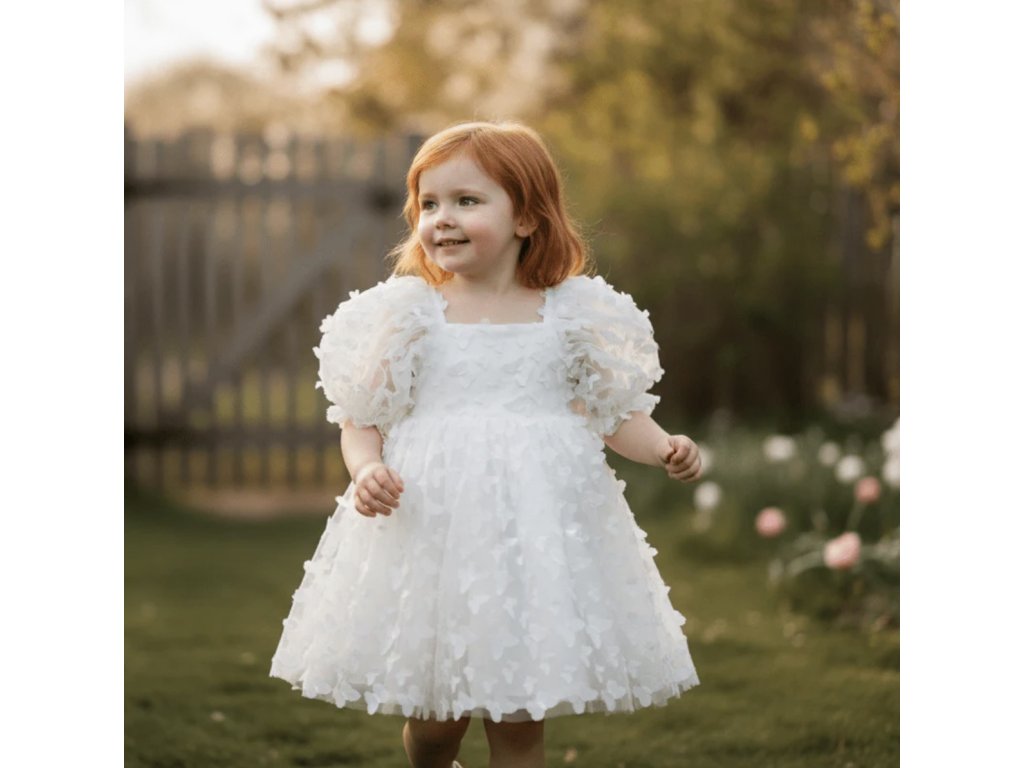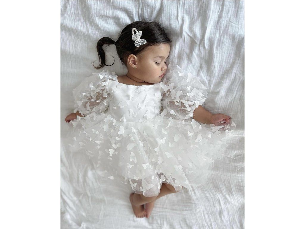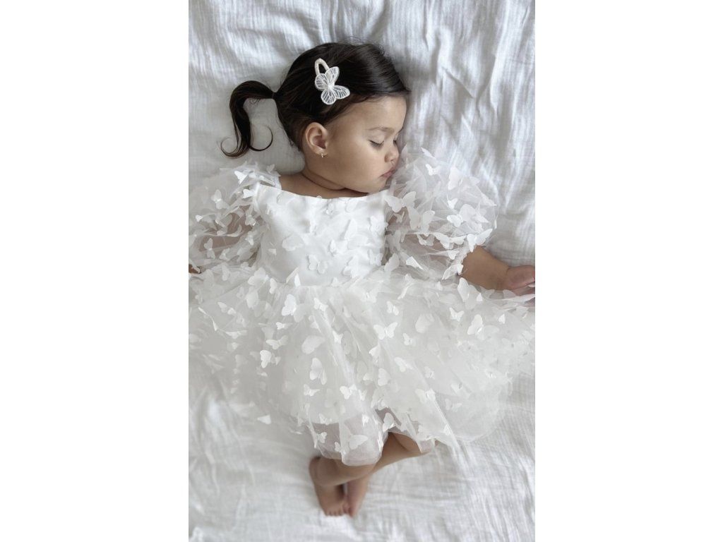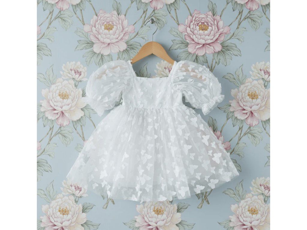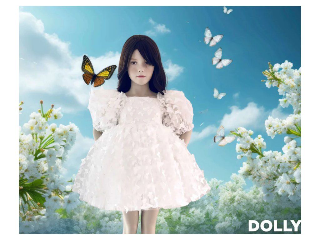 Bože! Sladšie to ani nemôže byť. Malé 3D motýle lietajú všade okolo. DOLLYin štýl Babydoll má klasickú roztomilú siluetu pre bábiky v štýle Shirley Temple s veľkými nafúknutými rukávmi, vysokým princeznovským pásom a vykrojeným chrbtom pre ľahké obliekanie.