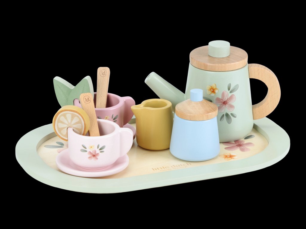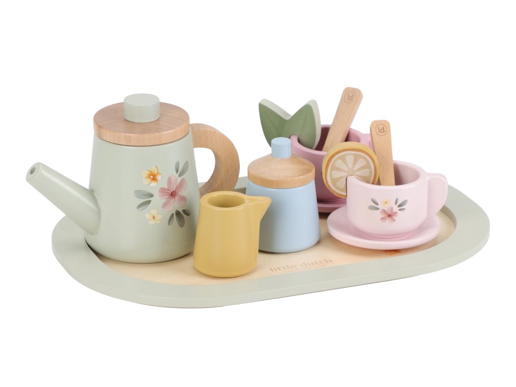 Little Dutch Čajový set drevený s kvetinovou potlačou