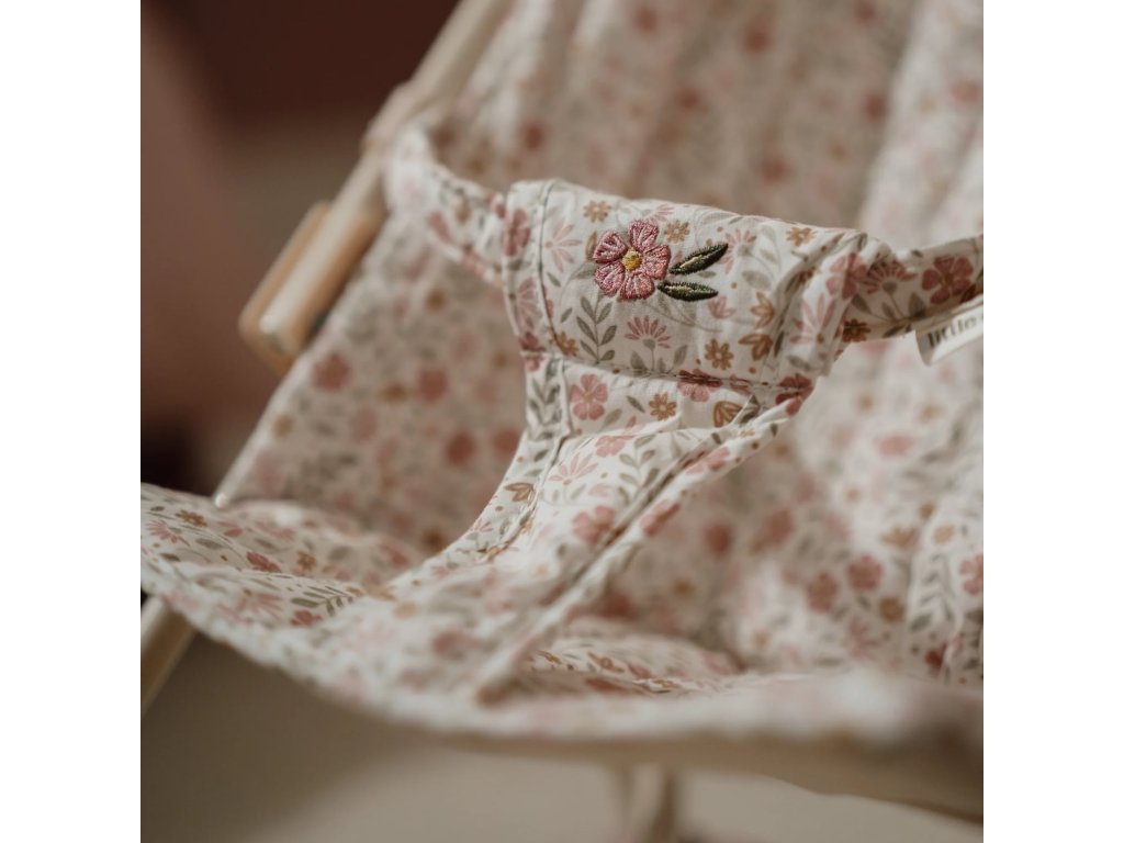 Štýlový kvetinový design krásne ladí s ďalšími doplnkami pre bábiky z kolekcie Little Dutch Soft Flowers.