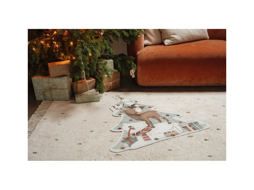 Užite si spolu so svojimi deťmi špeciálne vianočné puzzle! Veľké diely zložíte do obrovského 93 cm vysokého tvaru vianočného stromčeka s krásnymi ilustráciami soba, zajačika a ich priateľov. Puzzle môžu byť vianočným darčekom alebo zábavou, ktorú si spoločne užijete pri tešení sa na Vianoce.