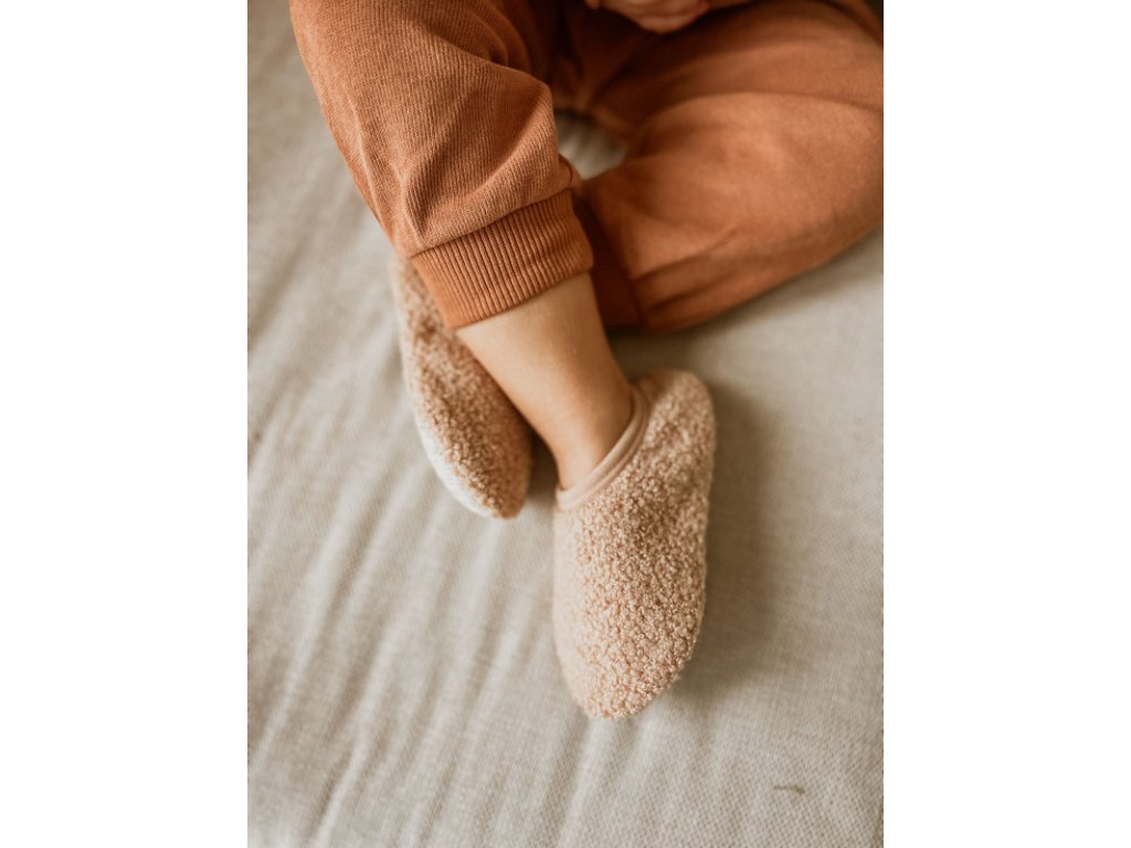 MRS. ERTHA Detské papuče Harbor hnedé sú ideálnou voľbou pre malé deti na nosenie v interiéri. S protišmykovou a mäkkou ohybnou podrážkou poskytujú maximálny komfort a bezpečnosť aj na chladných podlahách. Fungujú ako ponožka, prispôsobia sa detskému chodidlu a udržia nôžky v teple. Vyrobené zo 100% bavlny, papuče sú ľahké, priedušné a balené v praktickom bavlnenom vrecúšku.