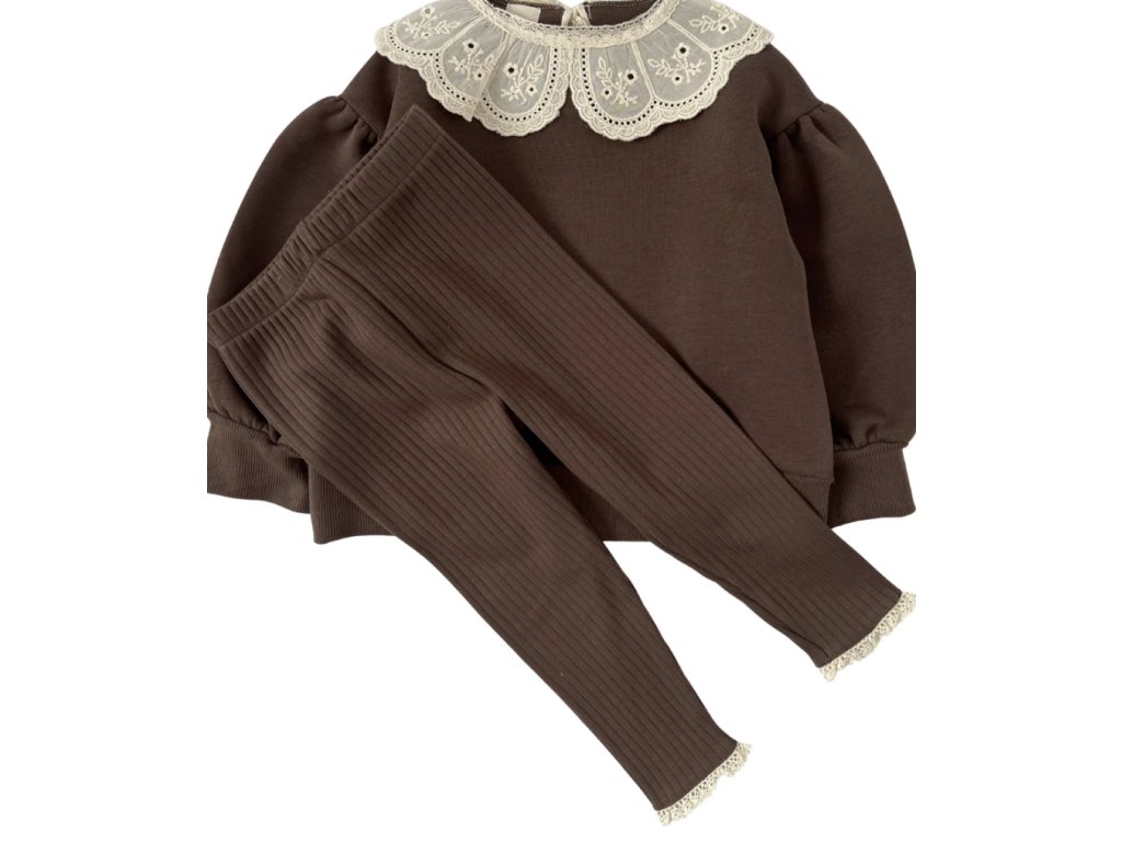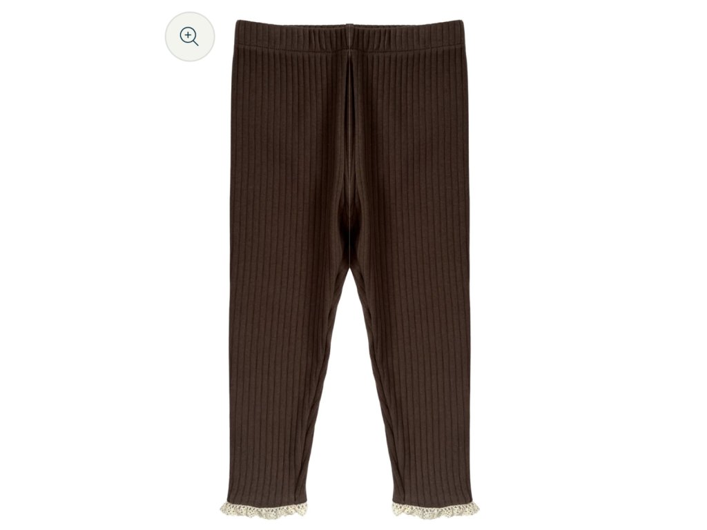 Rebrované legíny s čipkou - hnedé