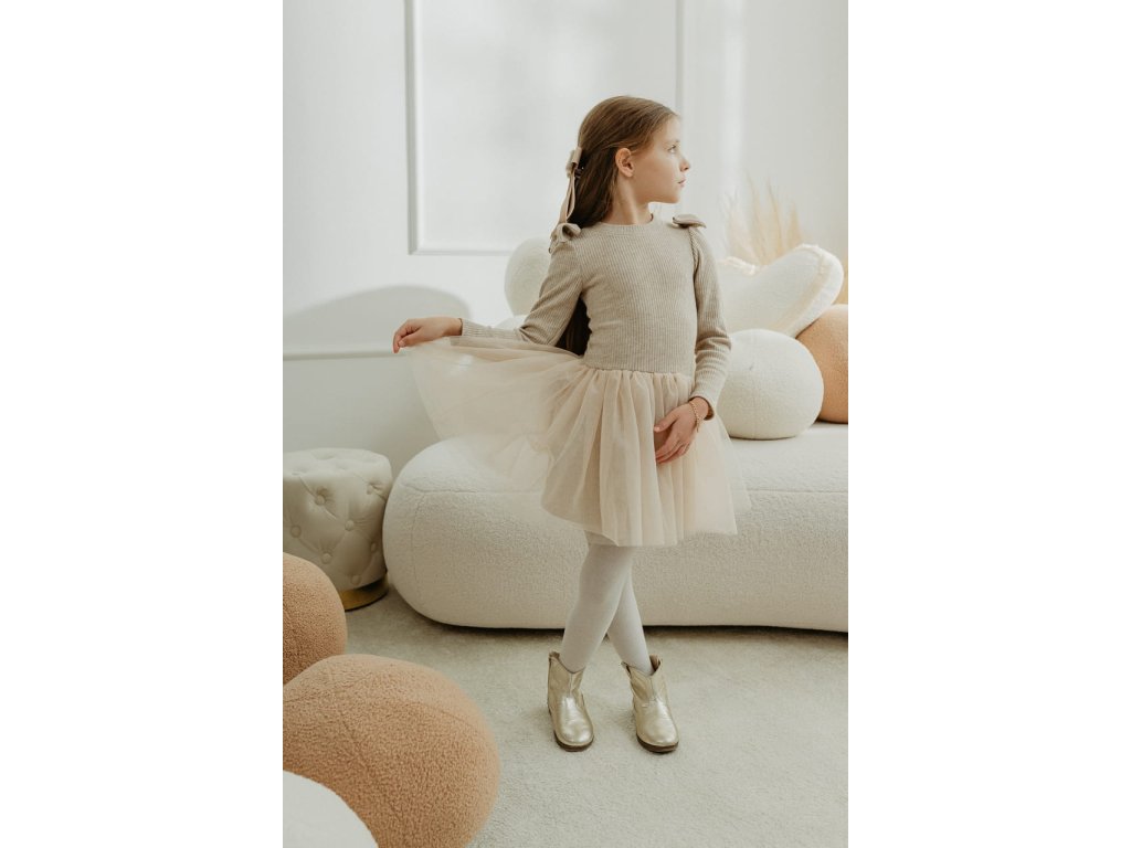 Šaty LIZ pre dievča sú pôsobivou a elegantnou voľbou na ležérnu alebo elegantnejšiu príležitosť - kombinácia úpletu a tylu narúša tradičné poňatie elegancie a dodáva moderný charakter.