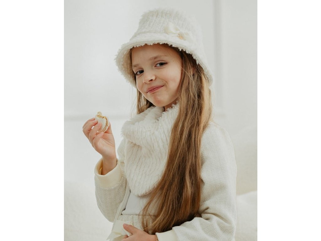 Čiapka zdobená elegantnou mašľou, dodáva akémukoľvek štýlu dievčenský šarm. Jeho jemnosť a príjemnosť na dotyk z neho robí ideálnu voľbu na rôzne príležitosti – od rodinných prechádzok až po špeciálne príležitosti.